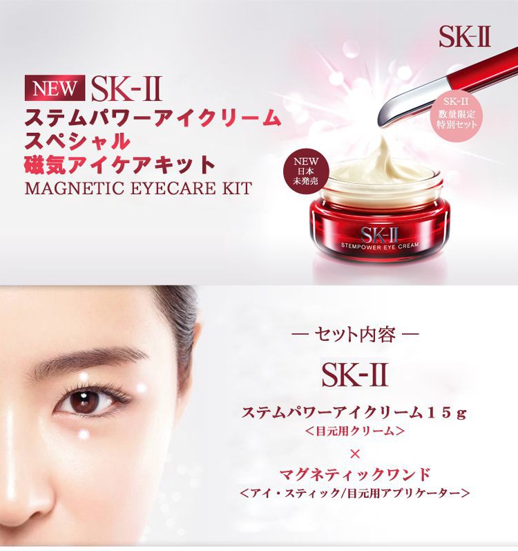 - Stempower Eye Cream SK-II ជាផលិតផលឯកទេសពិសេសសម្រាប់ភ្នែក មានមុខងារការពារកំដៅថ្ងៃ អាចជួយការពារស្បែកមិនអោយប្រែពណ៌ ហើយជាវិធីព្យាបាលដ៏សាមញ្ញ សុវត្ថិភាព អាចប្រើបានគ្រប់ពេលនៃថ្ងៃ។ គ្រប់រដូវកាល សាកសមសម្រាប់គ្រប់ប្រភេទស្បែក ជាពិសេសសម្រាប់ស្បែកដែលងាយប្រតិកម្មបំផុត និងអ្នកដែលប្រើកុំព្យូទ័រជាប្រចាំ។