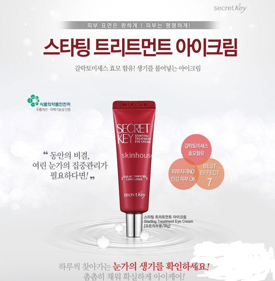 - Secret Key Starting Treatment Eye Cream មានផ្ទុកនូវសារធាតុចិញ្ចឹមសំខាន់ៗ ដែលមិនត្រឹមតែបិទបាំងភ្នែកជាបណ្តោះអាសន្នប៉ុណ្ណោះទេ ថែមទាំងជួយចិញ្ចឹមស្បែកក្រោមភ្នែកបានយ៉ាងល្អបំផុត ថែមទាំងបំបាត់ស្នាមខ្មៅជុំវិញភ្នែក និងស្បែកផងដែរ ស្បែករបស់អ្នកនឹងរស់ឡើងវិញយ៉ាងជាក់ស្តែង។